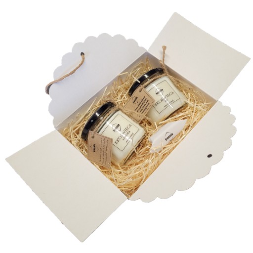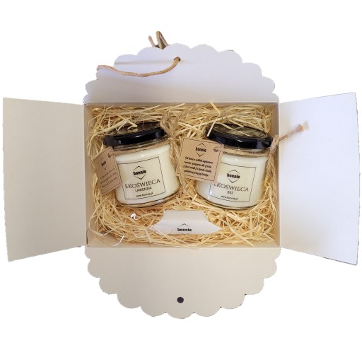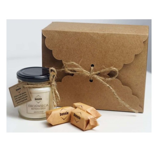 Kartoniki wysyłamy złożone z wełną drzewną w środku. Kupując w naszym sklepie również świece sojowe dostępne na innych naszych aukcjach, na Państwa życzenie możemy spakować zamówione świece do pudełek ozdobnych, dzięki czemu otrzymają Państwo gotowy do wręczenia prezent. W takim celu, podczas składania zamówienia, należy w wiadomości do sprzedającego zawrzeć taką informację. Należy pamiętać, że jedno takie pudełko mieści maksymalnie 2 świece.