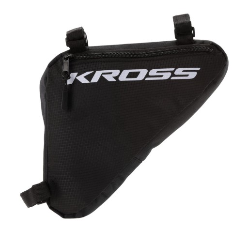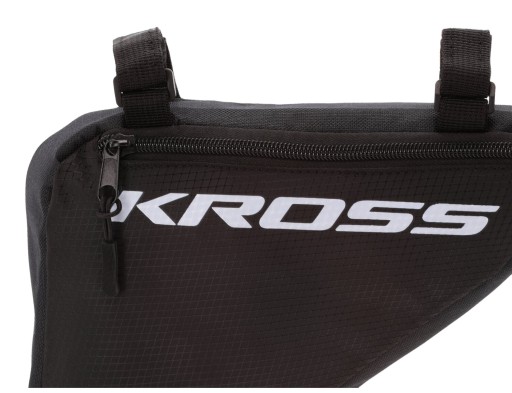 Triangle Bag Kross to torebka stworzona z myślą o miłośnikach wycieczek rowerowych. Wykonano ją z poliestru, materiału wytrzymałego i odpornego na uszkodzenia. Torba wyposażona jest w trwałe zamki, które pozwalają na długie użytkowanie. Mocowana jest za pomocą rzepu do górnej rury ramy roweru, dzięki czemu nie krępuje ruchów podczas jazdy.