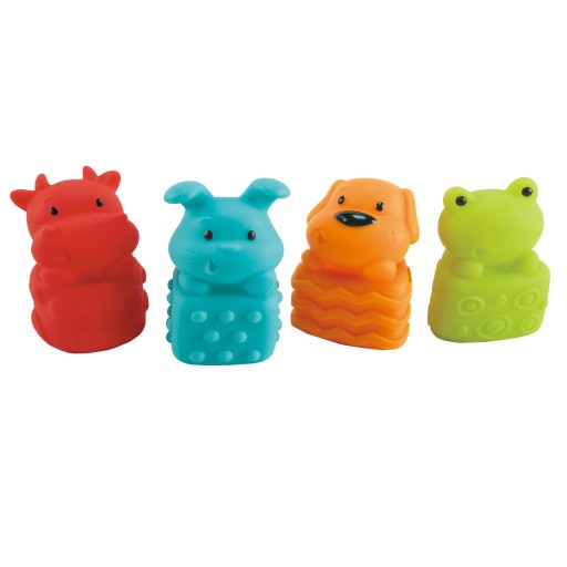 W zestawie znajdziesz klocki o kształtach zwierzątek takich jak krówka, króliczek, piesek oraz żabka. Figurki są wypukłe tworząc efekt 3D. Ich kolory oraz sympatyczne pyszczki z pewnością przyciągną uwagę dzieci.