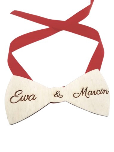 Wykonana jest z drewna, posiada wstążkę do zawiązania na szyi (nie ma regulacji, tylko wstążkę) i pełni funkcję rekwizytu do zdjęć.
