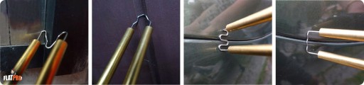 Po wgarzeniu implantu w materiał i zastygnięciu, wystarczy wygiąć dwa wystające druciki do zewnątrz, a one samoistnie ułamią się w odpowiednim miejscu.