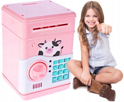 Oferujemy różową skarbonkę w kształcie sejfu z elektronicznym kodem! Dzięki niej Twoje dziecko nauczy się oszczędzania oraz planowania wydatków. Skarbonka przyjmuje automatycznie papierowe pieniądze oraz monety. Wystarczy, że przyłożysz banknot do wlotu, a sejf pobierze pieniążek automatycznie! Po jego pobraniu zacznie grać jedna z 7 melodyjek.