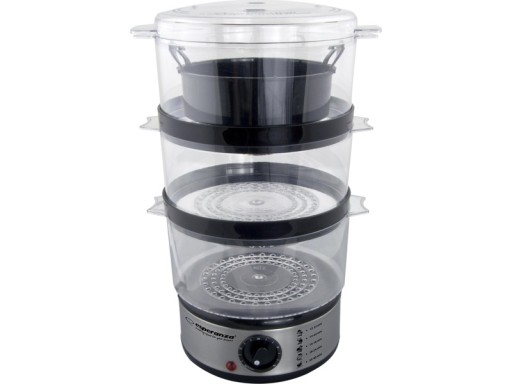 Poznaj wygodne i funkcjonalne urządzenie do zdrowego gotowania na parze - parowar marki ESPERANZA. Służy do łagodnego gotowania na parze, pozwalającego na zachowanie witamin w potrawach. Idealnie nada się do gotowania dla osób, które chcą zadbać o zdrowe odżywianie, stracić kilka kilogramów, oraz dla osób, których dieta wymaga gotowanych potraw. Urządzenie jest wyposażone w 3 pojemniki do gotowania i 1 pokrywkę. Możesz bez problemu w tym samym czasie gotować mięso, rybę, lub warzywa. Do parowaru przylega zbiornik na wodę. Podczas gotowania istnieje możliwość dolewania wody. Urządzenie posiada minutnik. Jest niezastąpiony w każdej kuchni!