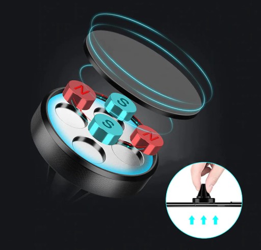 - Mocny i pewny chwyt telefonu dzięki zastosowaniu aż 4 magnesów neodymowych