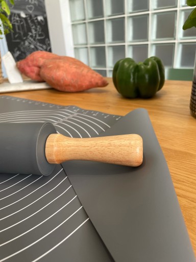 Silikonowy wałek z drewnianymi rączkami to połączenie tradycji z nowoczesnością.