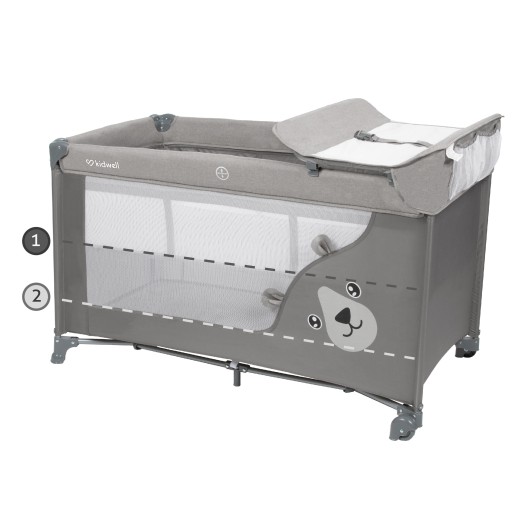 - Przestrzeń do odpoczynku i wygodnego snu dla dziecka, którą dostosujesz do wieku dzięki dwóm wysokościom podwieszania materaca. Górny poziom przeznaczony jest dla niemowląt do około 6 miesiąca życia (max. 9 kg), dolny poziom dla dzieci do 3 lat (max. 15 kg).