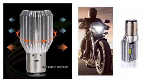 Żarówka BA20D ze światłami mijania i drogowymi dzięki rozmieszczeniu ledów jak w tradycyjnej żarówce. Świeci dwa razy mocniej od tradycyjnej, co daje światło zbliżone do reflektorów ksenonowych.