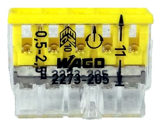 ✅ WAGO SZYBKOZŁĄCZKA NA DRUT 5x2,5 2273-205 to szybkozłączka elektryczna z popularnej serii złączek WAGO.
