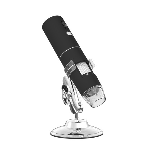 Mikroskop został zaprojektowany tak, aby spełniać swoją rolę w jak największej ilości sytuacji. Gdy tego potrzebujesz, może stać na stabilnym statywie. Posiada on obrotową głowicę w zakresie 360°. W innym przypadku lepszą opcją okazać się może obserwacja mikroświata z mikroskopem w dłoni.