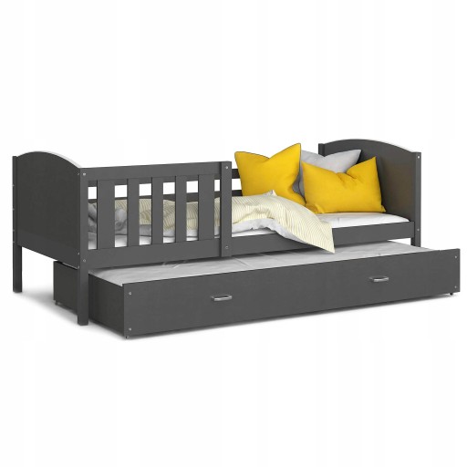 Przedstawione na zdjęciu łóżko podwójne z wysuwaną szufladą Tami P2 to gustowny mebel, który fenomenalnie zaprezentuje się w każdym dziecięcym pokoju. Łóżko to nieodzowny element aranżacji absolutnie każdej dziecięcej sypialni, który służy jednocześnie wypoczynkowi i zabawie. Produkt jest funkcjonalny i innowatorski, jest to spełnienie marzeń dzieci, a przy tym wspaniale wygląda, a także przynosi wiele przyjemności i frajdy.Ze względu na solidne wykonanie mebel wytrzyma każde dziecięce zabawy oraz z pewnością posłuży wiele lat. Nasze produkty można dopasować do panującej stylizacji ponieważ są dostępne w różnych kolorach, które są trwałe i nie blakną z upływem czasu. Gwarancja obejmująca okres dwóch lat stanowi kolejną zaletę produktu.