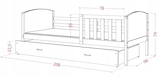 - Powierzchnia spania łóżko wysuwane: 184 x 80 cm