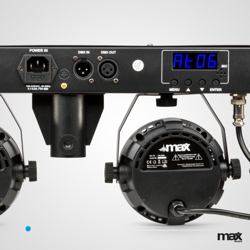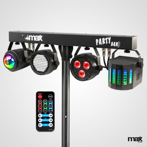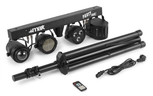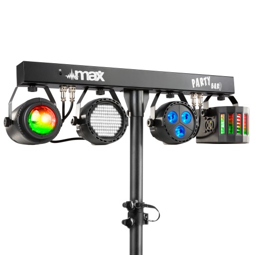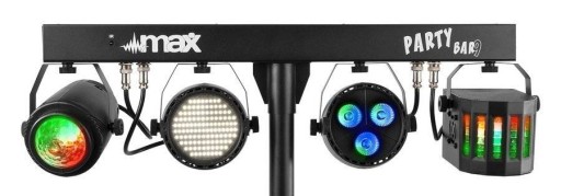 MAX Partybar09 to kompletny zestaw oświetleniowy z 4 różnymi efektami świetlnymi. Zapewnione są następujące efekty świetlne: