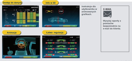 Rewolucyjne i nowatorskie urządzenie do ustawiania geometrii kół jest już dostępne !! Nowa koncepcja włoskiego producenta Ravaglioli na ustawienie geometrii kół 8 czujnikowe. Całkowicie wolne od komputera , może być używane w środowisku Wi-Fi z tabletem. Kompaktowa zaawansowana technologicznie alternatywa dla obecnych rozwiązań na rynku. Brak szafki z komputerem sterującym. Całkowite przeprojektowanie głowie pomiarowe z łożyskami w celu szybkiej kompensacji oraz jednym encoderem (rozwiązanie z najwyższych modeli) Innowacyjna koncepcja przechowywania głowic pomiarowych i zacisków na specjalnych panelach ,dzięki którym oszczędzamy miejsce.