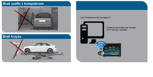 - urządzenie pracuje bezpośrednio na podnośniku (jedna z możliwości) i stałym podłożu, kanale