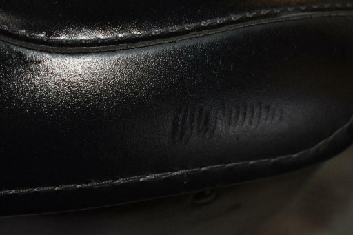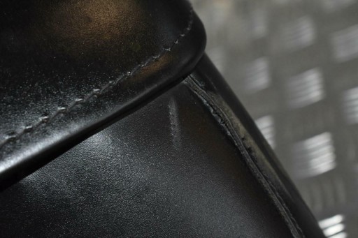 Oryginalna skórzana sztywna sakwa prawa, używana, posiada przetarcia i wady obszycia skórzanego widoczne na zdjęciach.