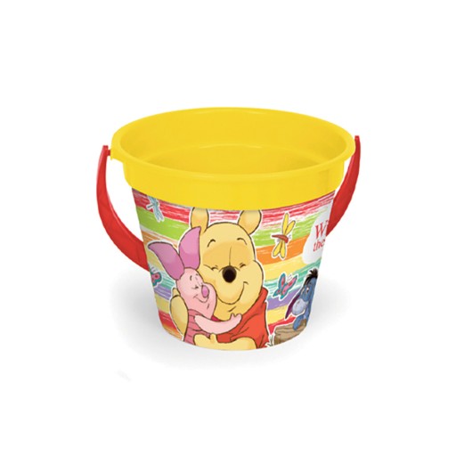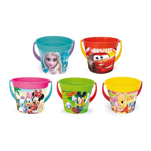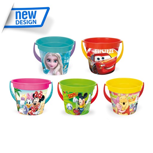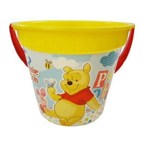 Okrągłe Wiaderko do zabawy na plaży, w ogródku lub w piaskownicy. Kolorowe, wykonane z grubego, wysokiej jakości tworzywa, odpornego na warunki atmosferyczne. Rączka wiaderka jest ergonomiczna, dzięki czemu ułatwia chwyt najmłodszym. Na zewnętrznej ściance znajduje się kolorowa grafika wykonana przy użyciu technologii IML (wtopiona bezpośrednio w plastik). Dzięki temu ciekawe, wesołe obrazki nie niszczą się pod wpływem temperatury, piasku czy słonej wody. Wiaderka dostępne są w 5 wariantach kolorystycznych.
