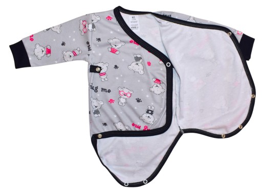 Wystarczy że rozepniemy body, położymy na nim maluszka, i kolejno zapniemy obie strony body tak, jak byśmy składali kopertę. Takie body jest wygodne dla dziecka, nie drażni brzuszka, i doskonale sprawdza się zarówno jako ubranko dzienne, jak i w roli piżamki niemowlęcej. Body kopertowe łatwo rozepniemy do samej zmiany pieluszki, co jest niezwykle przydatne, zwłaszcza w nocy.