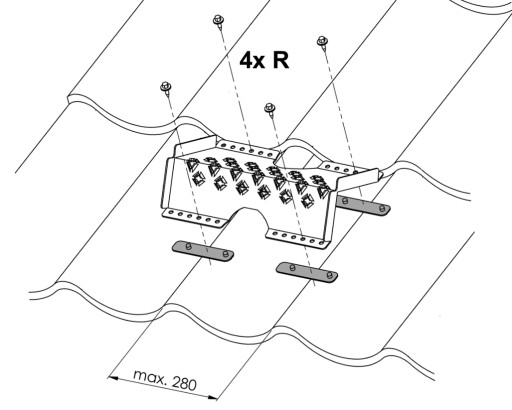 Pasują do blachy o maksymalnym odstępie między szczytami profilu wynoszącym 280 mm.