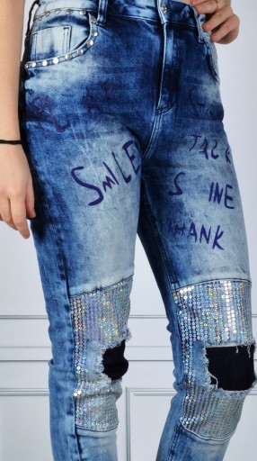 - SPODNIE SĄ ZDOBIONE NAPAMI,CEKINAMI ORAZ NAPISAMI