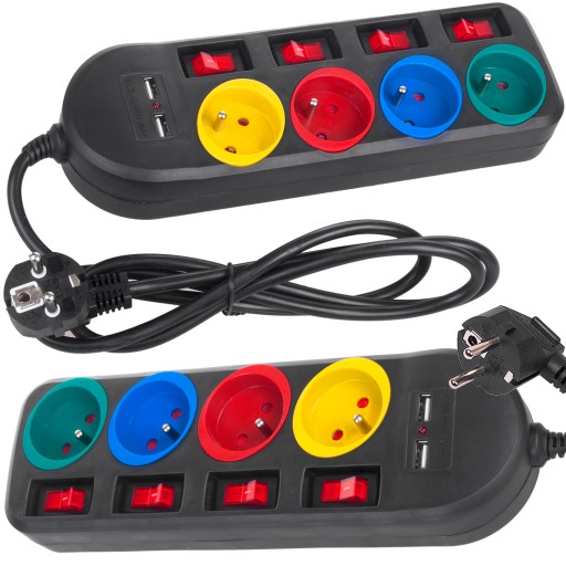 Listwa zasilająca z 4 gniazdami pozwala podłączyć równocześnie aż cztery pełnowymiarowe wtyczki. Wyposażona jest w zabezpieczenie przed dziećmi, osobne wyłączniki dla każdego gniazda oraz 2 porty USB umożliwiające ładowanie urządzeń takich jak smartfony, tablety, aparaty cyfrowe, itp.