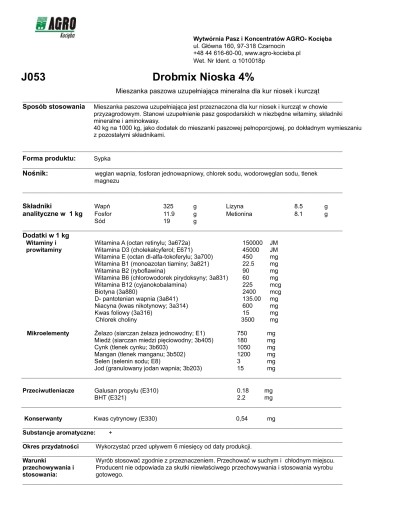 -harmonijny rozwój organizmu ptaków i utrzymanie wysokiej nieśności zawdzięczamy dodatkowi niezbędnych aminokwasów