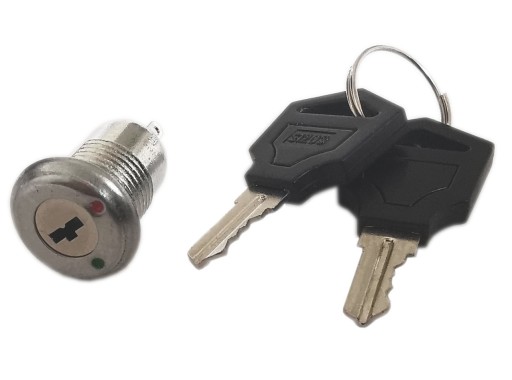 Przełącznik wandaloodporny z kluczykiem, przykręcany do obudowy - pojedynczy - bistabilny - zwierny - wyprowadzenia: do lutowania przewodów - ilość wyprowadzeń: 2 - Prąd / napięcie: 2A/250V - kolor : srebrny - otwór montażowy: 12mm - średnica kołnierza: 15mm - długość całkowita: 20mm - 2 kluczyki w zestawie