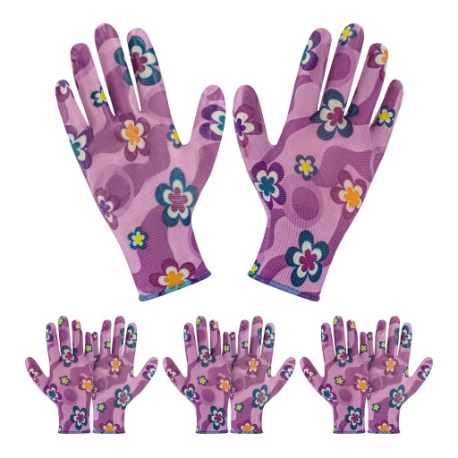 Na naszej aukcji dostępne są kolorowe rękawice ogrodowe wykonane z lekkiego materiału – poliestru. Pokryte warstwą poliuretanu, która sprawia, że trzymane przedmioty nie wyślizgują się z rąk. Rękawice zakończone są ściągaczem, aby lepiej trzymać się na nadgarstku. Doskonale sprawdzą się do prac ogrodowych oraz domowych. Są bardzo elastyczne i wytrzymałe, idealnie dopasowują się do dłoni.