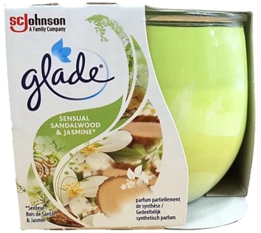 GLADE ŚWIECA ZAPACHOWA 120 gram DO 35-h PALENIA O INTENSYWNYM ZAPACHU DRZEWO SANDAŁOWE-JAŚMIN RENOMOWANEJ FIRMY SC-JOHNSON