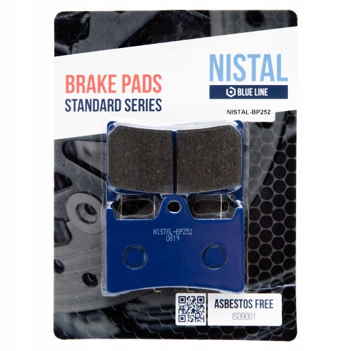 Klocki hamulcowe marki NISTAL to bezpieczny i trwały produkt posiadający doskonały stosunek jakości do ceny. Okładzina to organiczny materiał cierny wzbogacony dodatkami poprawiającymi hamowanie. Klocki z niebieskiej serii BLUE LINE dzięki zawartości 20% miedzi, zapewniają dobre odprowadzanie ciepła, nie szarpią i nie piszczą podczas hamowania. Zapewniają łagodne zużywanie się tarczy. Sprawdzą się również w cięższych motocyklach do rekreacyjnej jazdy. Wytwarzane zgodnie z certyfikatami: ISO 9001:2008, ISO 14001:2004, OHSAS 18001:2007.