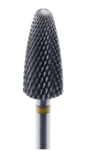 Frez z węglika spiekanego- bardzo delikatny w kształcie stożka o drobnych nacięciach krzyżowych.