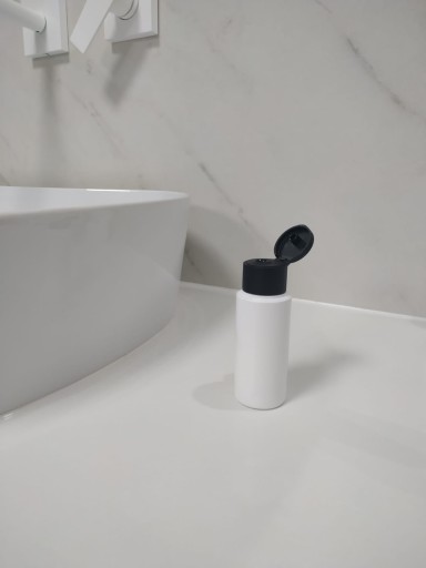 Butelka o pojemności 50 ml z profesjonalnym kosmetycznym FLIP TOP em. Idealna na żel lub płyn do dezynfekcji.