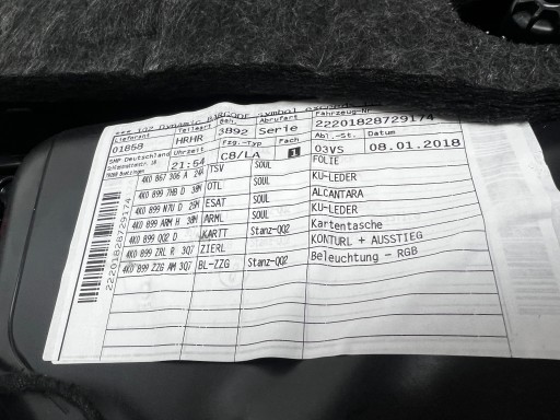 TAPICERKI BOCZKI DRZWI AUDI A6 C8 4K SEDAN SKÓRA