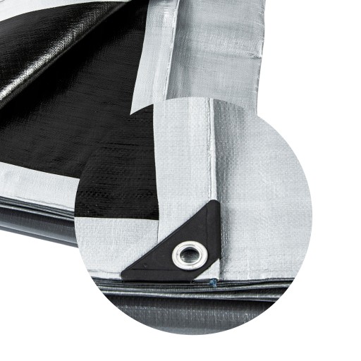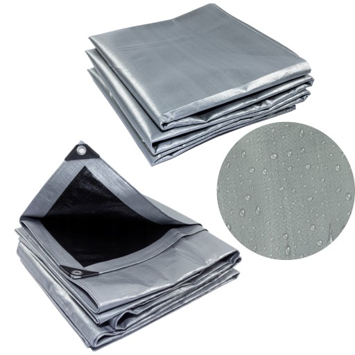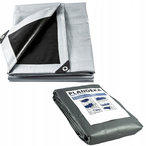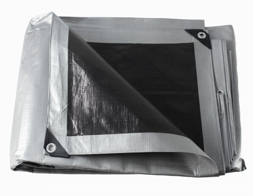 PLANDEKA MEGA GRUBA SREBRNO-CZARNA 3x4+UV 260g-NAJGRUBSZA PREMIUM