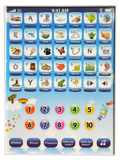 Tablet edukacyjny jęz. polski nauka cyfry literki