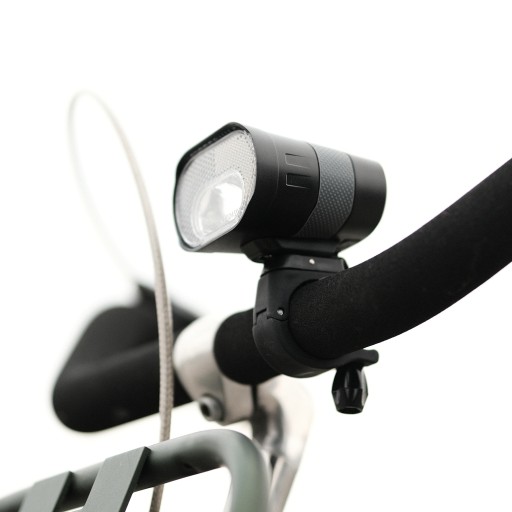 Przednia lampa wyposażona w diody LUXLED, charakteryzujące się bardzo mocnym światłem. Jest to niezwykle ważne podczas jazdy nocą, jak i po zmroku. Białe, ostre światło jest widoczne z bardzo daleka. Przednia lampa posiada 3 tryby świecenia: stały 100%, stały 50% i migający. Sprawdzi się doskonale podczas nocnych wypadów rowerem czy hulajnogą
