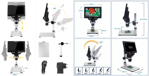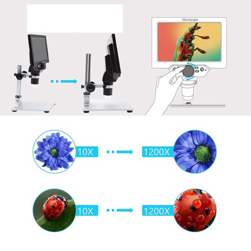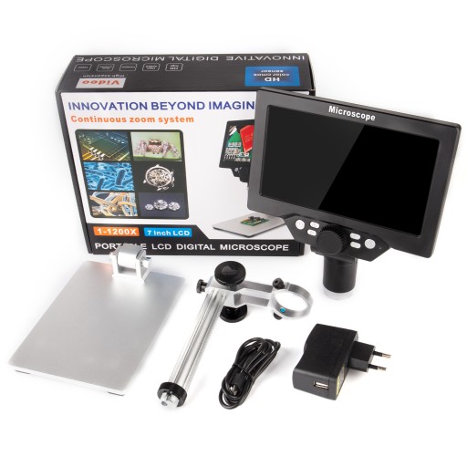 MIKROSKOP CYFROWY EKRAN LCD 7″ FULL HD 12MP 1080p LED POWIĘKSZENIE 1200x