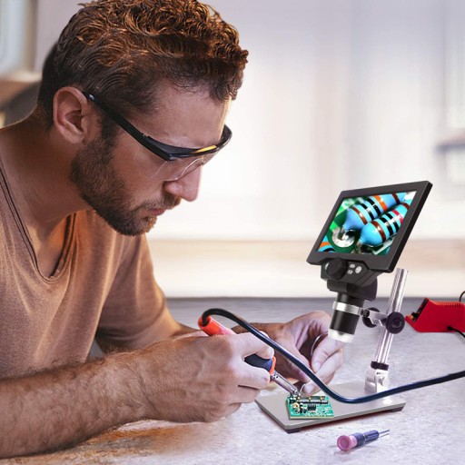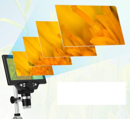 Cyfrowy mikroskop USB z podświetleniem LED pozwala na wyświetlanie oglądanego obrazu na 7 calowym wyświetlaczu lub na ekranie komputera w jakości Full HD. Działa jak kamera – obraz przesyłany jest na żywo - w czasie rzeczywistym - zapewnia ciągły podgląd pola obserwacji oraz możliwość rejestracji zdjęć lub wideo. Wyposażony jest w matrycę światłoczułą o rozdzielczości 12 mega pikseli. Kolejną zaletą urządzenia jest płynna regulacja ostrości oraz wbudowane oświetlenie LED (8 diod) z możliwością regulacji natężenia oświetlenia.