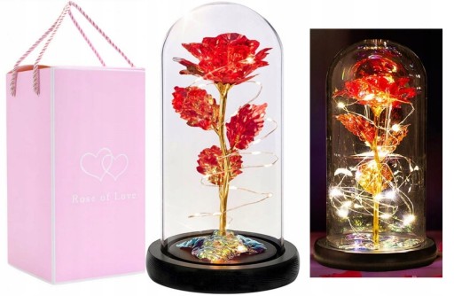 WIECZNA RÓŻA W SZKLE szklana róża + led IDEALNY PREZENT