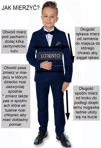 Duża rozmiarówka, jeśli dziecko nosi rozmiar 146, zwykle pasuje garnitur o rozmiar mniejszy SPRAWDŹ WYMIARY, pomagamy w doborze odpowiedniego