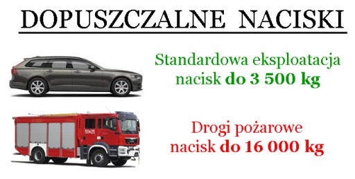 ✅ Obciążenie pod drogi pożarowe: do 16 t/m2