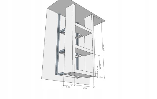 ZABUDOWA Z PŁYTY GK Z 3 PÓŁKAMI