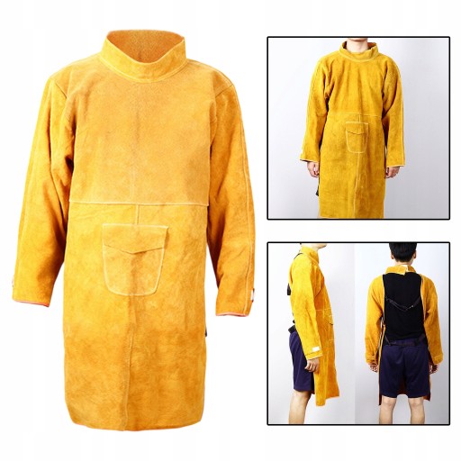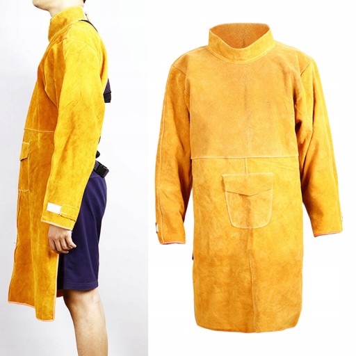Fartuch Spawalniczy Odporny Na Płomienie Płaszcz Ze Skóry Bydlęcej Odzież Ochronna 100 Cm
