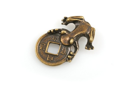 Figurka w kształcie żaby z monetą chińską.