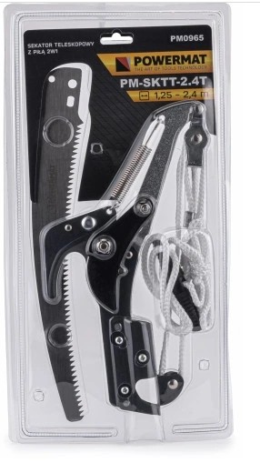 Nożyce na wysięgniku marki POWERMAT, ostrza wykonane są ze stali, która zapewnia odpowiednią twardość i umożliwia precyzyjne i łatwe cięcie. Nożyce służą do przycinania i pielęgnacji drzew na wysokości. Wysięgnik pozwala na dobranie najwygodniejszej pozycji do pracy.