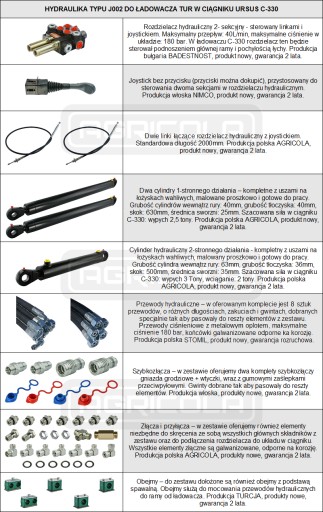 Zestaw jest sprawdzony, wielokrotnie montowany na ładowaczu w ciągniku URSUS C-330. Poszczególne podzespoły można kupić oddzielnie, na innych naszych aukcjach.