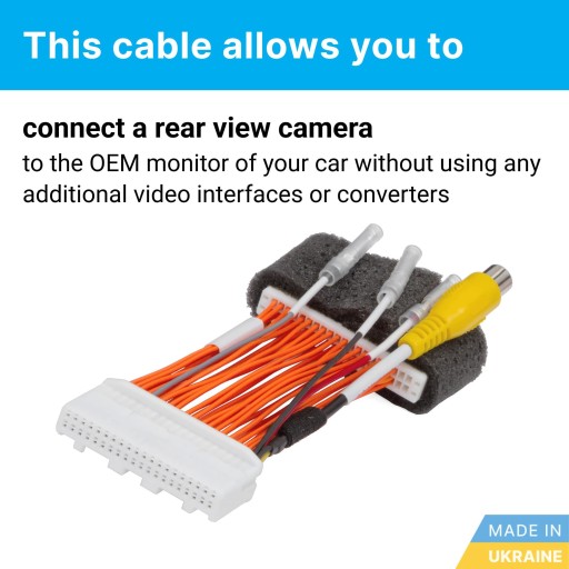Kabel do podłączenia kamer cofania w samochodach Nissan Leaf ze standardowym systemem multimedialnym Nissan EV GEN1 i Nissan EV GEN2. Za pomocą tego kabla można zainstalować niefabryczną kamerę na zasadzie Plug&Play bez uszkodzenia standardowych przewodów.