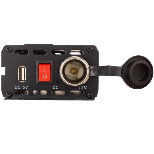 Reduktor napięcia jest dodatkowo wyposażony we wtyk do gniazda zapalniczki. W obudowie urządzenia znajduje się gniazdo zapalniczki 12V oraz gniazdo USB 5V.