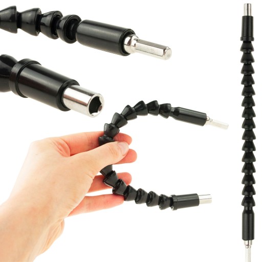 Elastyczna przedłużka do wkrętarki to produkt, który idealnie sprawdzi się w Twoim domu i warsztacie. Takie rozwiązanie pozwoli na użycie wkrętarki w dowolnym miejscu, bez obaw o obrobienie główki wkręta. Przedłużka jest niezwykle elastyczna, dzięki czemu bez problemu radzi sobie ze śrubami umieszczonymi nawet pod kątem 180°. Przedłużka skróci czas napraw i znacznie je ułatwi.
