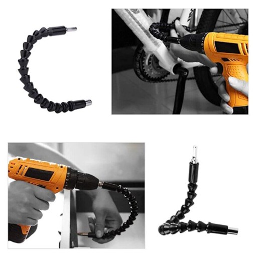 ✅ Elastyczna przedłużka pozwoli wkręcić śrubę w miejscu, pod którym nie zmieści się wiertarka.