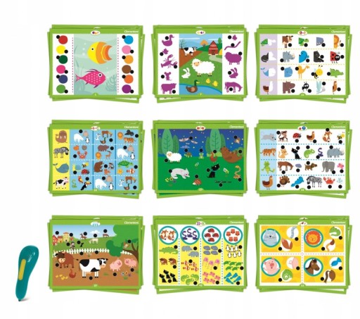 Gra Mówiące pióro 500 Pytań Zwierzęta Dzięki grze Mówiące pióro 500 Pytań - Zwierzęta dzieci w wieku od 3 do 5 lat, bawiąc się w towarzystwie swoich przyjaciół zwierząt, poznają ich charakterystyczne cechy, odkrywają środowiska, w których żyją i różne ciekawostki na ich temat. Mówiące pióro towarzyszy dziecku podczas zabawy za pomocą efektów świetlnych i zabawnych komunikatów dźwiękowych. Projekt edukacyjny leżący u podstaw tej gry został opracowany po to, by wzbudzać u dzieci zainteresowanie światem zwierząt i chęć odkrywania jego tajemnic. 60 zaproponowanych zadań dotyczy różnych dziedzin i rozwija w zabawny sposób umiejętności logiczne, mnemotechniczne, numeryczne, manualne oraz zmysł obserwacji.